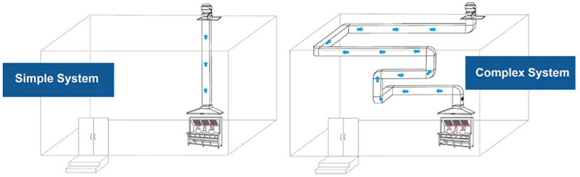 Other systems however will have more complicated runs of ductwork, advanced pollution control units, or even long chases of horizontal ductwork and stories of vertical ductwork. Kitchen exhaust systems in strip malls or in buildings where the system has been installed after the construction of the building itself may require special these modifications. Exhaust systems for large or multiple story locations may need complicated ductwork to effectively transport the grease and exhaust to the exterior of the building. For example, when you place a kitchen in the basement with exhaust fans on the roof, the only way to connect them would be with extensive stretches of vertical and possibly even horizontal ductwork. Service cleans such as these may take several hours or several shifts.